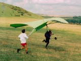 The club pilot course's main aim is getting you to a standard where you're proficient to fly un-supervised (in a local flying club). During the club pilot course you'll be taught how to fly in prone position (that's the lying down bit in the pod harness or stirrup), instructed in performing simple but controlled turning manoeuvres, how to handle nil-wind landings/take-offs and best of all, you'll need to do two soaring flights (which will take you 200 feet above the ground, with flights lasting more than 5 minutes each!). Often, the schools move to more advanced hills, not the simple gradients used during the Elementary Pilot course, but much higher and steeper ones. This results in more time in the air, giving you the chance to concentrate more on the flying, rather than the take-off followed by an immediate landing! Another benefit is the hills are often too steep to push or carry the glider up again, so the school will normally provide transport from the bottom to the top!